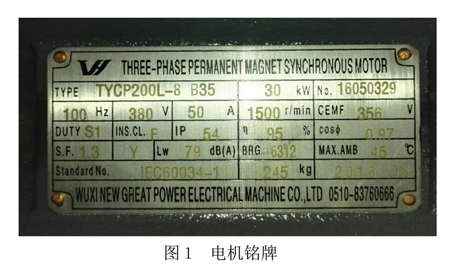我們選用的是30KW的FC360變頻器,驅動的是30KW的三相交流永磁同步電機,電機磁極數為8極,額定頻率為100Hz,具體電機參數如圖1銘牌所示。FC360采用VVC+控制原理,配置過程閉環模式后,試運行十分流暢,但停車后會有一點點慣性反轉現象。后來發現是由于空壓機本身的機械慣性導致的,為了克服慣性問題,我們在變頻器上加了一點點直流制動,效果馬上就體現出來了,能做到說走就走,說停就停的效果。值得注意的是,變頻器對同步電機的電機參數比較敏感,所以事先跟電機廠家確定好電機的定子阻抗和d軸電感這兩個參數,效果會更佳。