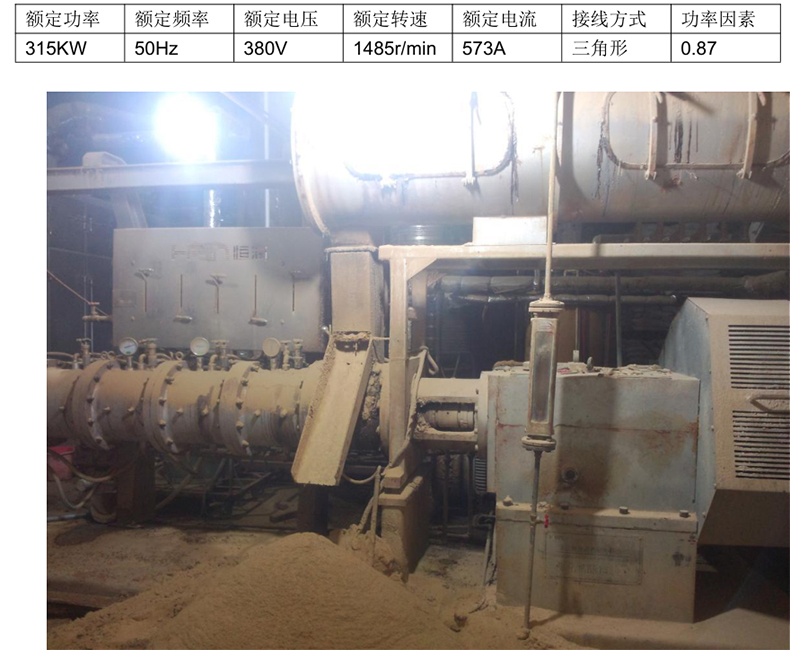 2、 、 改造設(shè)備概述: :客戶要求改造的設(shè)備為膨化機,達315KW 功率(實際銘牌數(shù)據(jù)如下表1)。膨化機工作原理為:利用膨化機的不等距非標準螺旋系統(tǒng)的擠壓推進,物料中的氣體被排出,并迅速被物料填充,物料受剪切力作用而產(chǎn)生回流,使機膛內(nèi)的壓力增大,隨著摞旋與機膛間的磨擦使物料充分混合、擠壓、加熱、膠合、糊化而產(chǎn)生組織變化,原有的結(jié)構(gòu)受到破壞,同時機械能通過物料在膛內(nèi)的磨擦作用而轉(zhuǎn)化為熱能,使物料成為具有流動性質(zhì)的膠凝狀態(tài),物料被擠壓到出口時壓力由高壓瞬間變?yōu)槌?,由高溫瞬間變?yōu)槌?,造成水分迅速地從組織結(jié)構(gòu)中蒸發(fā)出來,使其內(nèi)部形成無數(shù)微孔結(jié)構(gòu),再通過切割裝置,切割冷卻即膨化成形。