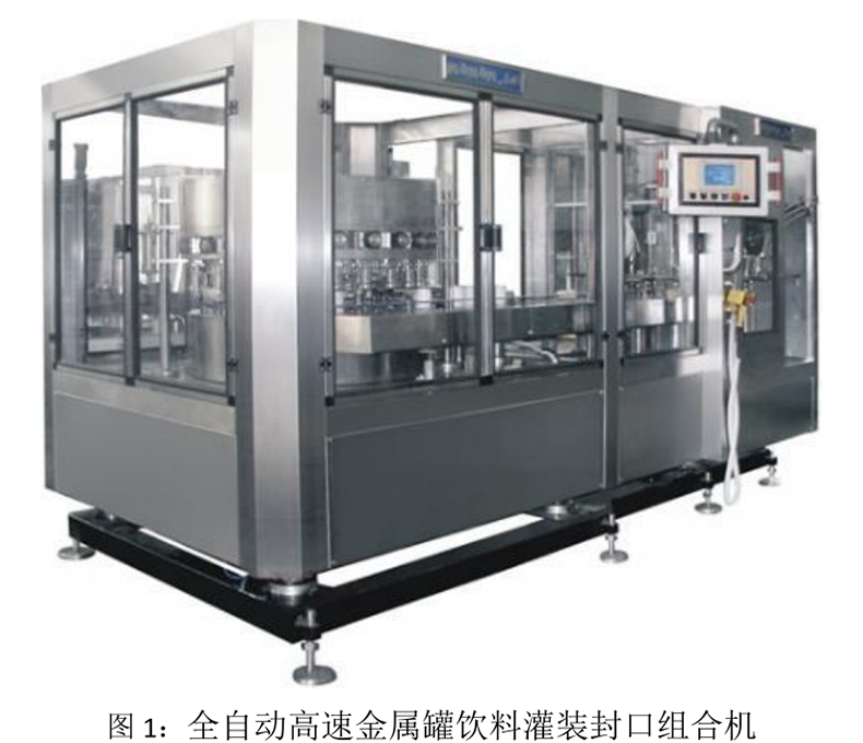 該設備是目前國內生產能力高、智能化控制程度先進的灌裝封口組合設備(如圖 1);廣泛應用于金屬罐包裝的果蔬汁、涼茶等飲料產品的自動化高速包裝,集灌裝、封罐于一體。主要有如下幾方面特征: