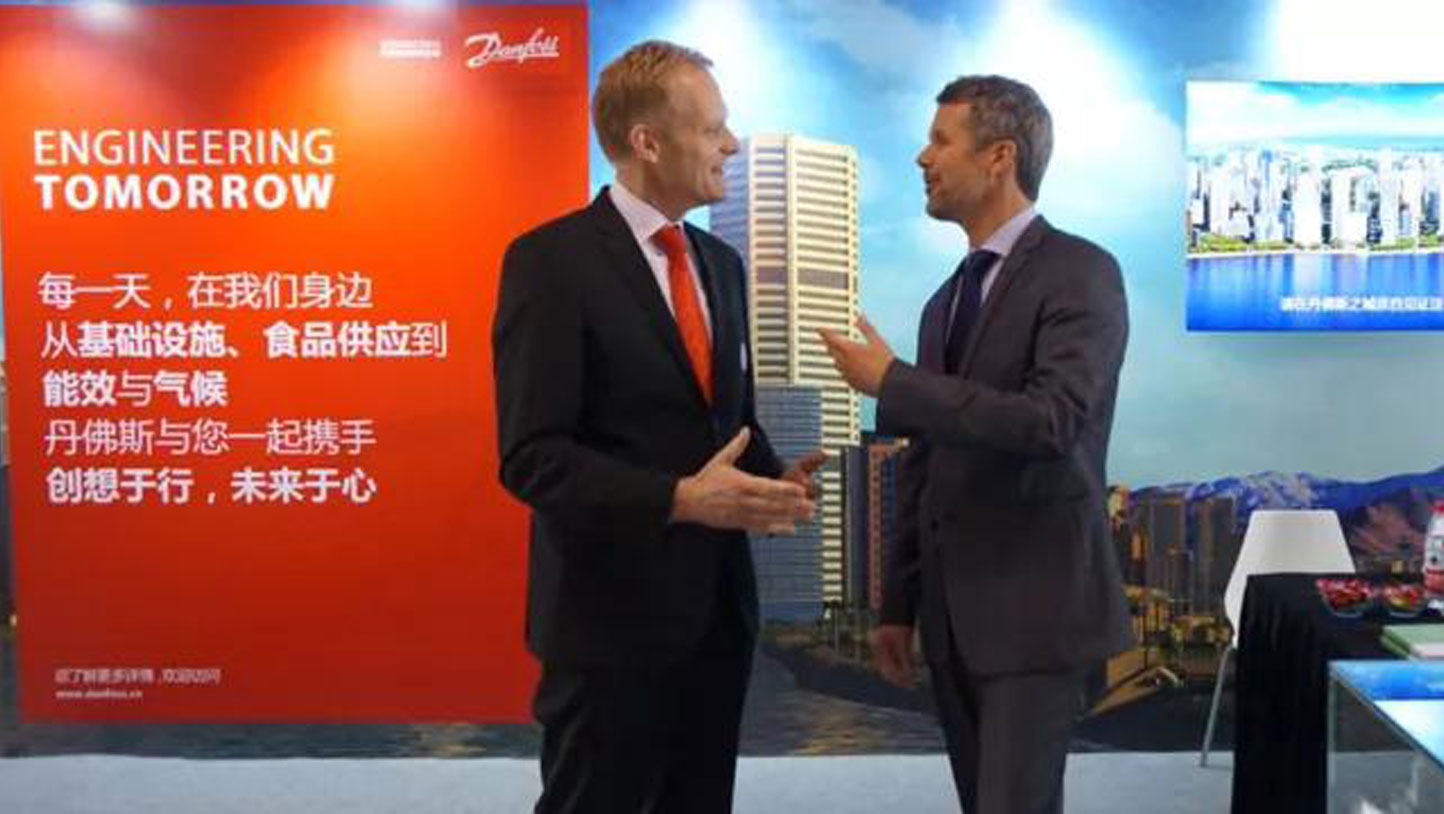 丹麥王儲(chǔ)腓特烈殿下也被丹佛斯展臺(tái)吸引,到訪參觀期間,丹佛斯中國(guó)區(qū)總裁司徒嘉德先生熱情接待了皇儲(chǔ)殿下,介紹了丹佛斯近些年來(lái)在全球各地尤其是在中國(guó)所取得的長(zhǎng)足發(fā)展,并著重強(qiáng)調(diào)了丹佛斯產(chǎn)品和解決方案在北京等國(guó)際大都市城市基礎(chǔ)設(shè)施升級(jí)改造過(guò)程中的巨大潛力。