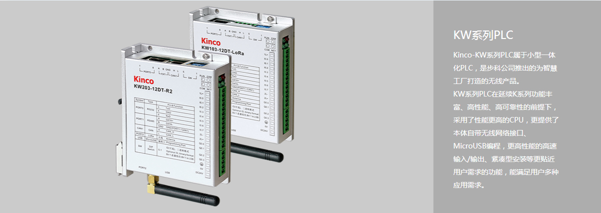 Kinco-KW系列PLC屬于小型一體化PLC,是步科公司推出的為智慧工廠打造的無線產品。