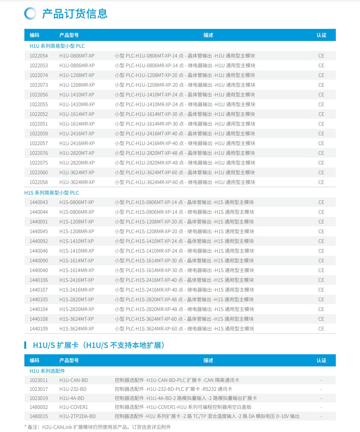 H1U/S系列簡易型小型PLC