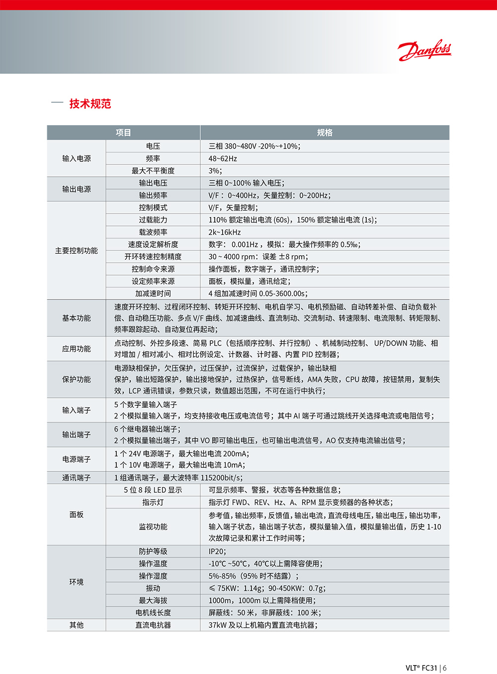 VLT? FC31 系列是丹佛斯結(jié)合實(shí)際工程應(yīng)用需求研制的針對(duì)風(fēng)機(jī)、水泵、暖通空調(diào)等低負(fù)載市場(chǎng)的工 程型產(chǎn)品,集成了風(fēng)機(jī)、水泵應(yīng)用相關(guān)工藝,可廣泛應(yīng)用于供水、供熱、污水處理、HVAC 和項(xiàng)目改造 等領(lǐng)域。